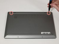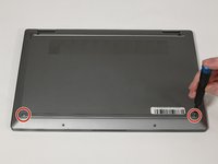 Use tweezers to peel back the feet on the top and bottom of the Chromebook to reveal four additional screws.