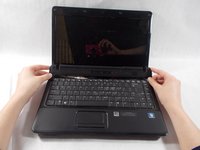 Carefully unclip and remove the large black wire that is connecting the keyboard to the laptop