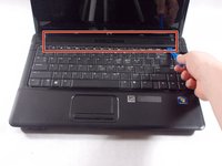 Gently use a plastic spudger to remove the plastic holder at the top of the keyboard