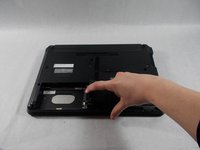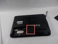 • Flip the laptop over to the backside. The Hard Drive is located on the bottom left.