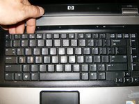 Turn the computer display-side up, with the front toward you. Open the computer as far as possible. There are four retention tabs that hold the keyboard down.