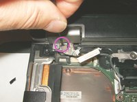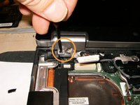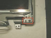 Now remove the screw from the left hinge that holds the ground loop. the display is no longer supported, so lift it straight up.