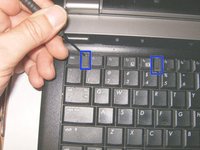 Use a small screwdriver, or other instrument, to slide the four tabs in a downward direction toward the palmrest.