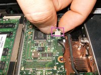 Disconnect the display panel cable from the system board, by pulling the connector from the socket. Do not pull the cable, but pull on the connector.