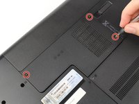 On the back panel of the laptop are two screws which have a keyboard symbol next to them.