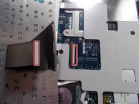 Using your fingers, carefully pull the ribbon cable connecting the keyboard and laptop toward the hinge. Continue until connecting cable is unplugged.