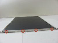 The screws may have a small, black plastic cover that lays flush with the screen. Remove these using a pointed tool such as the spudger or philips head screwdriver by prying them out.