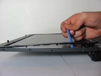 Keeping the pry tool under the trim, slide it around the entire screen until the the cover has completely detached from the base.