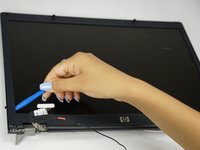 Once a corner of the plastic screen cover is lifted, slide the pry tool around the entire screen until the screen is completely lifted from the base.