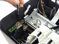 • You can find the sensor, with the back of the printer facing you, on the right, and in front of the main circuit board. The paper control sensor will also be attached to a small circuit board. You will be replacing this circuit board.
