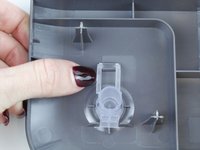 • Once the arm is unclipped, gently lift and pull the button until it disconnects at the hinge slot.