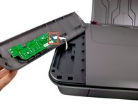 This guide provides step-by-step instructions to remove and replace the button circuit board on an HP Deskjet 1055 printer using basic tools. This repair may be necessary if the power or function buttons stop responding.