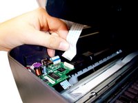 • Disconnect the ribbon by pinching the blue tab and pulling away from the green circuit board.