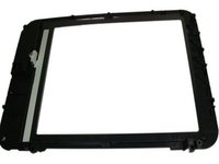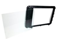 • Remove the glass pane by carefully bending the plastic frame down from the side and sliding the glass pane out from the side.