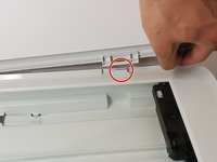 Gently pry the scanner bed cover slightly off of the printer at the hinge.
