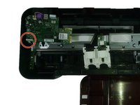 Once the top is loose, there will still be a connection wire between the printer and the cover. This wire will be about one inch wide and white, located under the buttons.