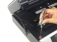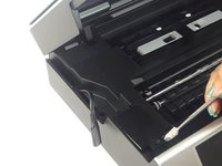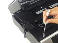 Open the the printer by lifting the top section. Make sure you're lifting from the lowest portion of the scanner section.