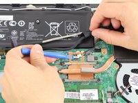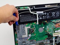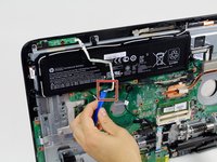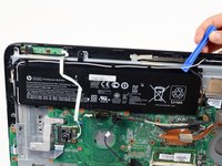 Gently remove the battery from the computer, making sure not to tug on any of the cables or wires during the removal.