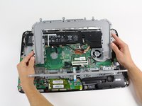 Remove the fourteen 6.35 mm PH#0 screws around the stand recess and metal cage.