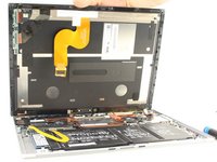 With the screen lifted at a 30 degree angle, gently disconnect the yellow ribbon cable at the end connected to the screen.