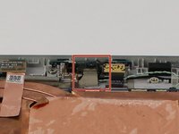 Remove the two connectors on the back of the screen by lifting the connector tabs on the motherboard with a plastic opening tool and pulling gently.