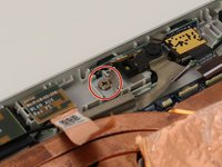 Use a Phillips screwdriver to remove the Phillips M2.0x2.0 screw to the left of the webcam. Turn the screwdriver counterclockwise to remove the screw.
