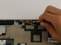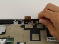 Underneath the tape, disconnect the LCM cable, the larger wire that was underneath the tape, from the back of the tablet screen.
