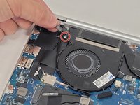 Using the Phillips #0 screwdriver, remove the two silver 5 mm screws surrounding the fan.