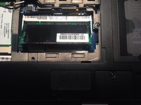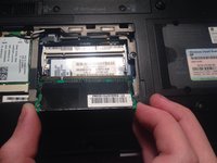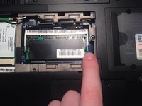 Remove the RAM. Push on the two tabs holding the module in the laptop and lift the module by the edges.