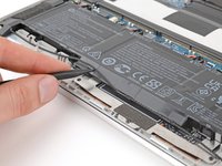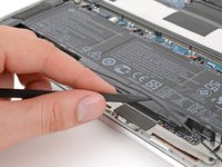 • Use the point of a spudger or your fingernail to push on alternating sides of the battery's sliding connector to walk it completely out of its socket.
