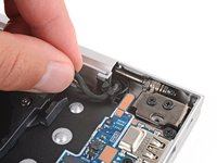 • Use your fingers or tweezers to lift the display and antenna cables out of their clip near the right hinge.