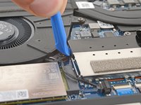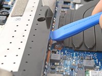 Rotate your spudger around the corner and up the edge to release the clips securing the short edge of the cover.