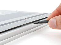 Slide your spudger along the rear edge toward one of the corners to release the rear edge clips.