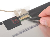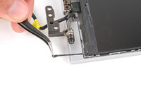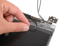 Use your fingers or tweezers to lift the display and antenna cables out of their clip near the right hinge.