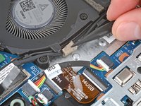 Use tweezers or your fingers to peel up the cable tape near the right side of the fan.