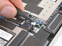 Use the point of a spudger to push on alternating sides of the left speaker's sliding connector to walk it completely out of its socket.