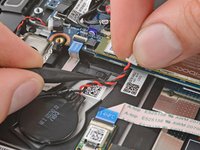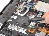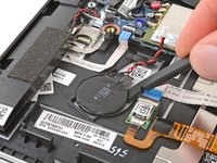 Use the flat end of a spudger to gently pry up the RTC battery, separating the adhesive securing it to the frame.
