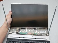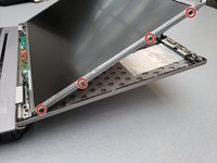 At the bottom of the screen, there will be a cable connected to the body of the laptop. Remove this cable.
