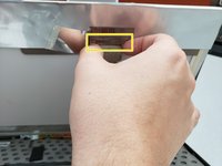 On the back of the screen, there will be a ribbon cable that connects to it. Remove this cable by pinching the two tabs on the ends of the connector and pull outwards.