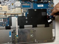 Gently pull and free the battery's bundled cable connector that leads from the battery to the motherboard.