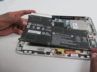 Lift the power button board ribbon cable up and away so that it doesn't get in the way of the battery during removal.