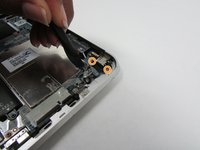 Remove the two Phillips PM 1.3x2.0mm screws that secure the audio jack board from the housing.