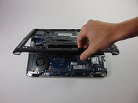 The motherboard can now be lifted up easily, if any snagging occurs make sure everything was disconnected properly before continuing.