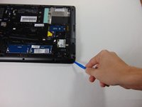 Using the plastic opening tools, remove the plastic cover by beginning at one of the corners and prying it up.