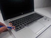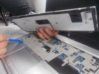 Using a plastic opening tool, push the tabs in while pulling up to disconnect the tabs from the keyboard frame.