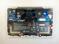 Use the Phillips 1 screwdriver to remove the five 3mm Phillips screws from the battery assembly.