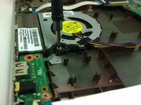 Remove the three 4.5 mm Phillips #0 screws holding the fan in place.