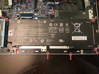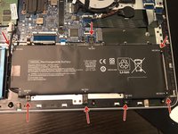 Place the new battery into the laptop and line up the screw holes. Reinstall the battery screws.