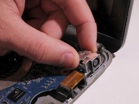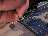 • Gently pull the white connector shown in the picture towards you to disconnect it from the system board.