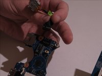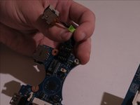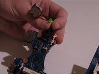 Gently pull the white connector shown in the picture towards you to disconnect it from the system board.